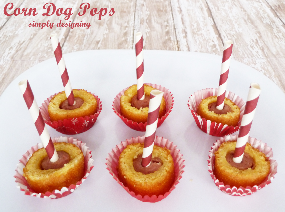 Place each bite of corn dog into a pretty cupcake liner, cut a paper straw in half and stick the straw into the corn dog!