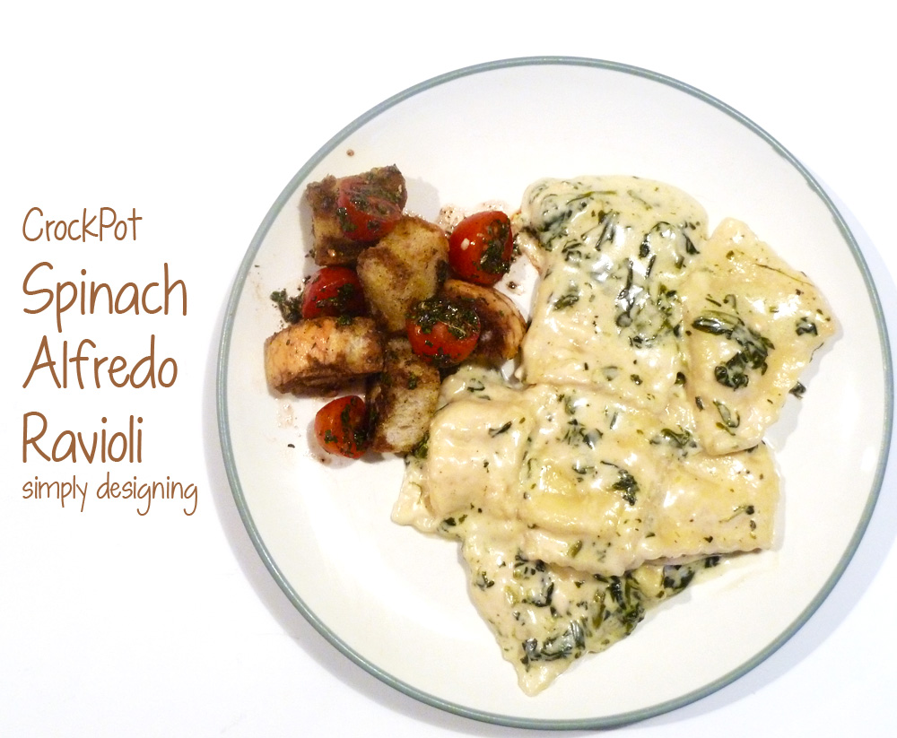 One of the dishes on the menu that immediately caught my eye was a Spinach Alfredo Ravioli with Tomato-Herb Bread Salad meal. Yum! It looked simple and tasty and didn't take a lot of prep time! So I couldn't wait to try it out!