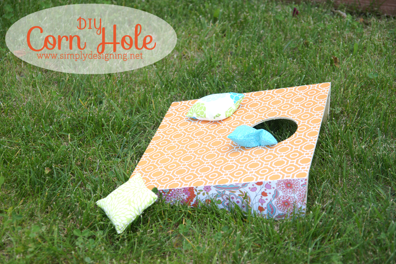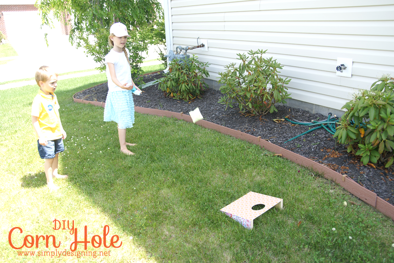 We LOVE to be outside as much as possible!  Even in the hot hot summer, I have time scheduled every day to just play outside!  And it is one of my kid's favorite parts of the day.  We love to ride bikes and play in the sprinklers, we love to take walks and go to the park, we love to roller blade and we love to head to the pool.  We also LOVE to play games!  So I am really excited to share a really fun and simple outdoor (or indoor) game, perfect for kids (and adults) of all ages!  Here is my simple and fun version of Corn Hole!