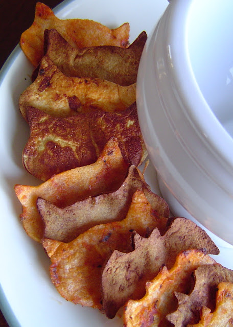 While surfing the internet, I found the cutest idea for making homemade tortilla chips out of flour tortillas. They were in these adorable fall leaf shapes and for the life of me, I can't find the site again.