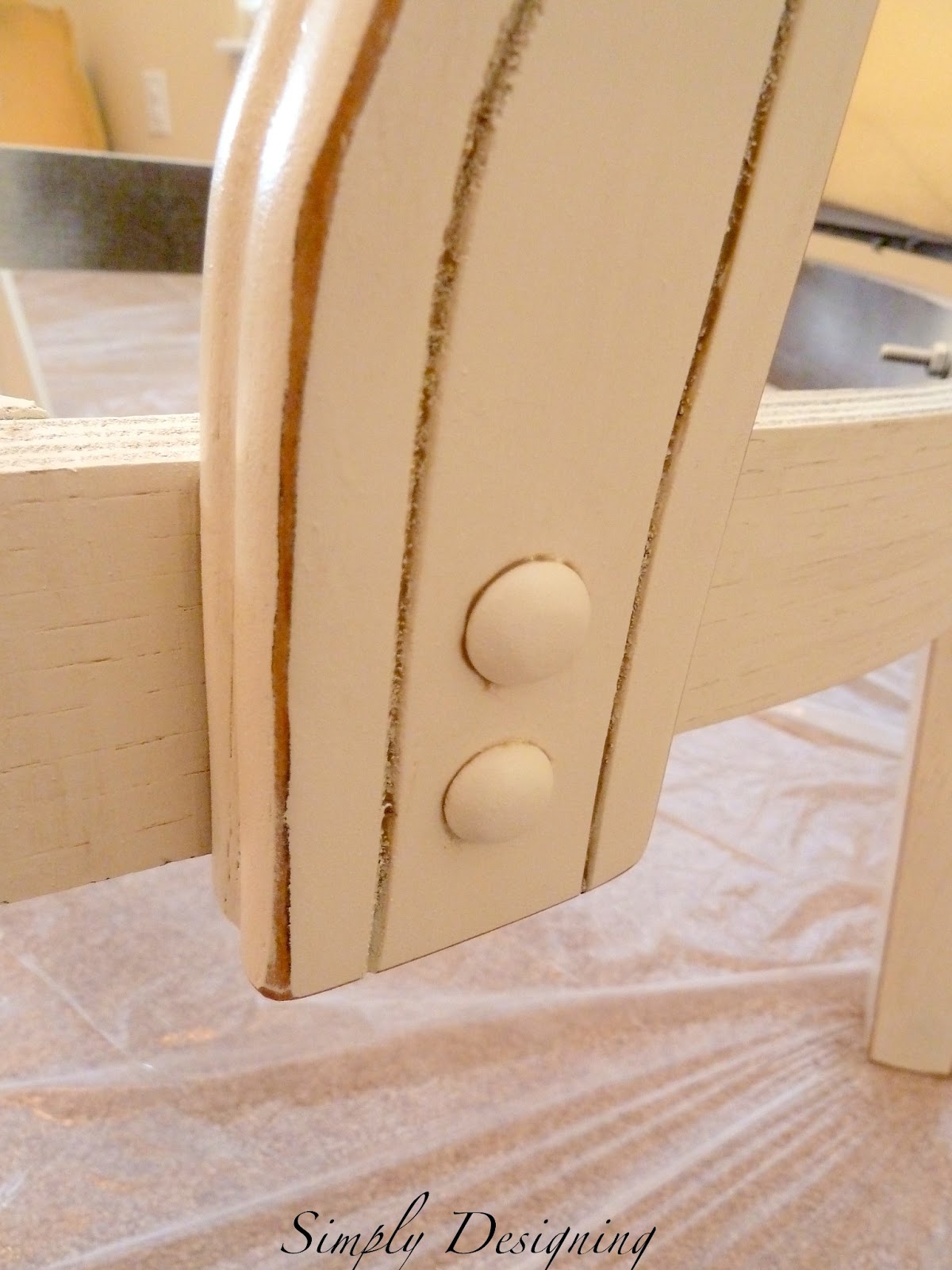 Using a clean, soft cloth, rub stain off of surface. I like to leave a little more stain in the distressed and recessed areas while taking more stain off of the white surfaces. But it's totally a personal preference thing so play with this and see what look you like best.