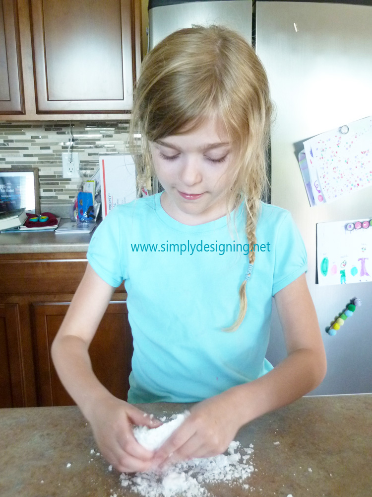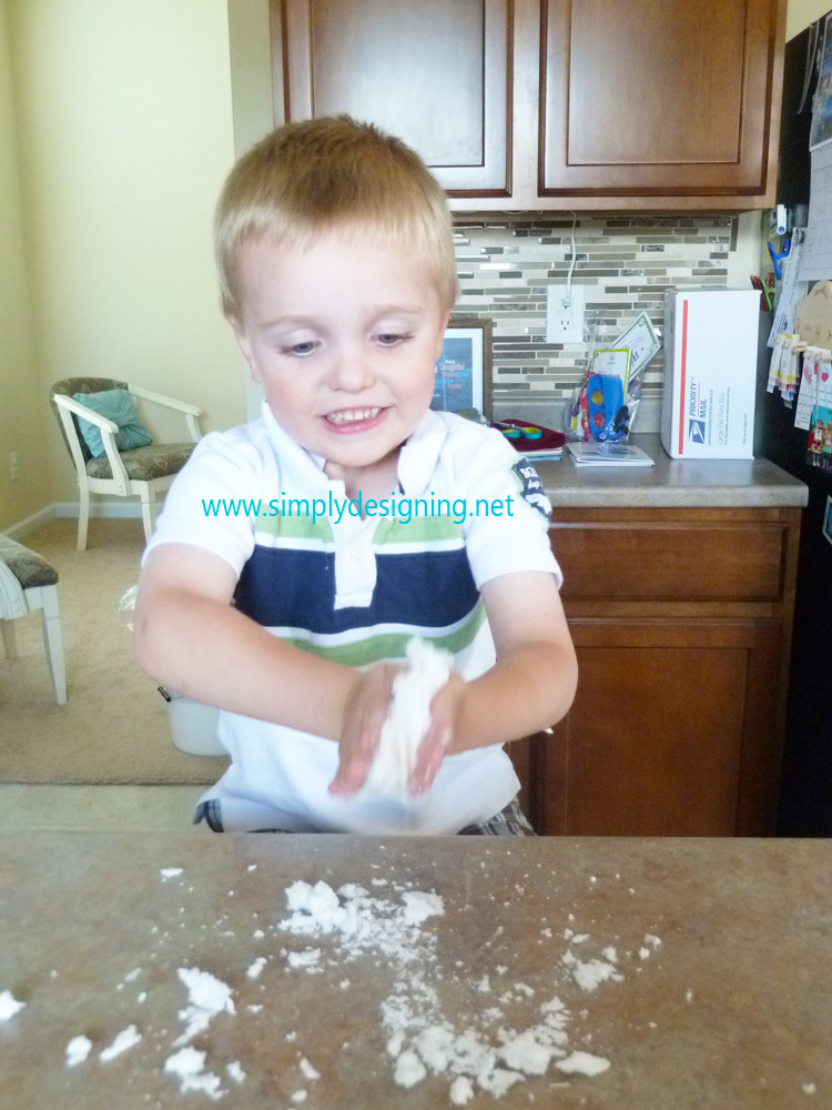 - It creates a HUGE mess. And while is is cleanable....soap + wet rag = soapy mess...so...it can actually take a bit of work to clean up. SO, let your kids play with this outside, or in the bathtub. But maybe not on the kitchen counter where it will also drop all over your kitchen floor...just sayin'