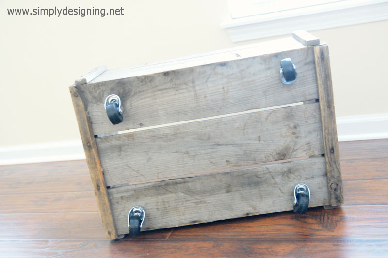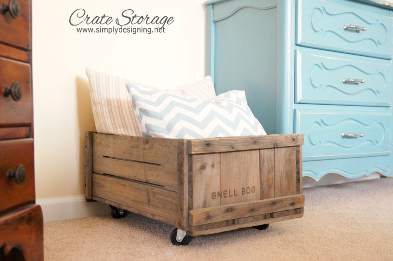 That is awesome for storage! I love that it is on wheels now. The color of the crate is perfect!