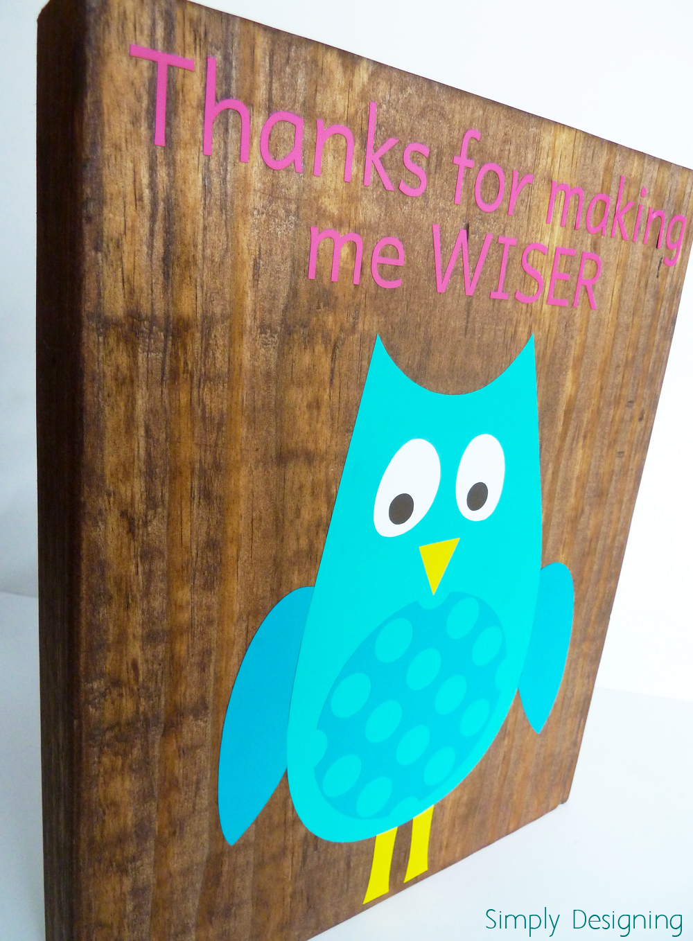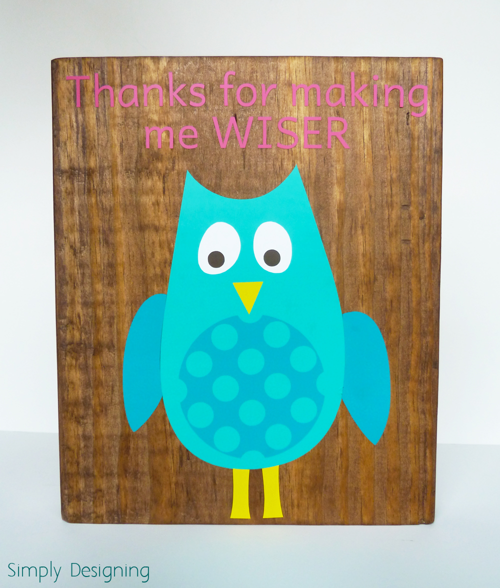 I can not believe that Teacher Appreciation Week is right around the corner! And this year I didn't want to scramble for a last minute gift so I got started early. Since my daughter's teacher loves owls, I decided to make her a cute board using some vinyl and one of my favorite crafting tools, my Silhouette!