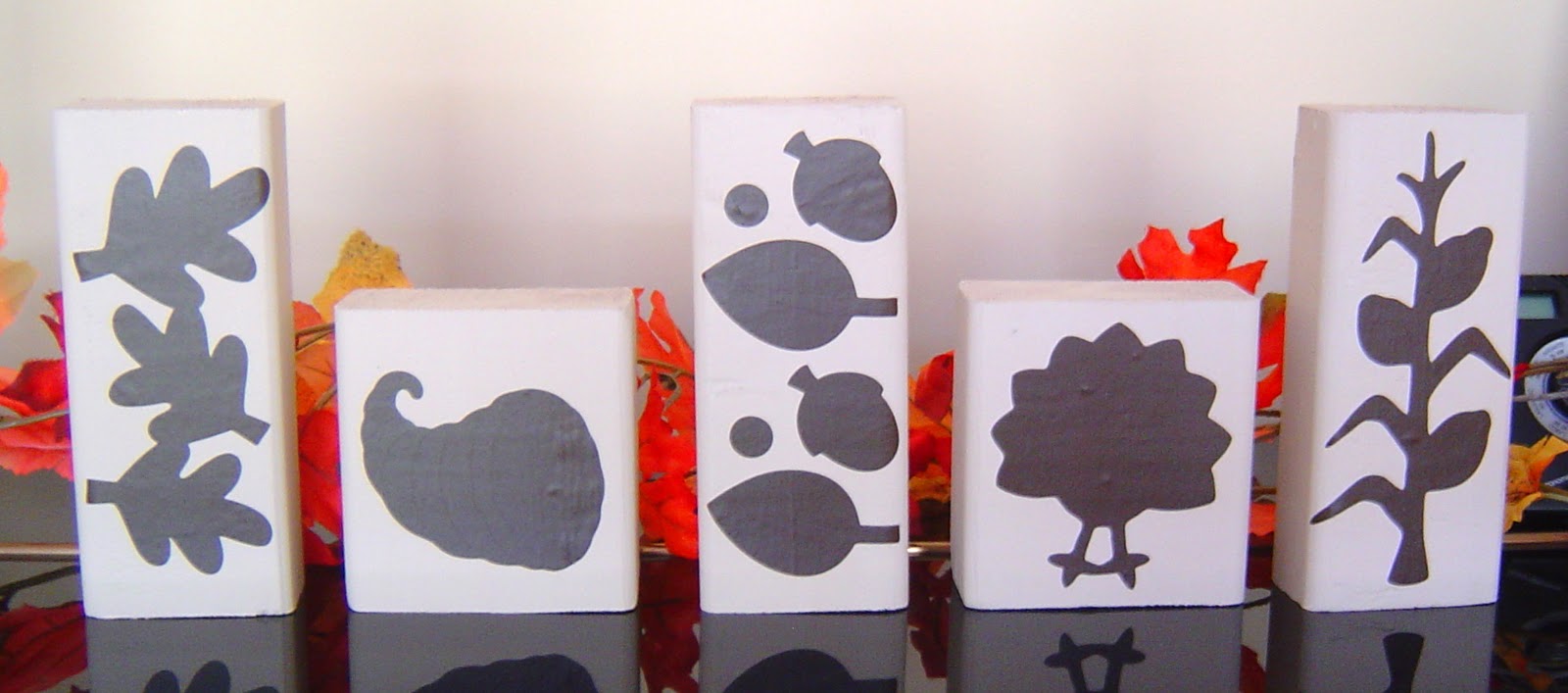 And my sillouette blocks.  I love these.  My friend Abbi from My Garden of Eden and I made these together on a fun "craft day" we decided to have together!  I was able to use her Cricut to make the vinyl for these, but if you are so inclined you could also paint or cut shapes out of paper and mod podge them on as well.