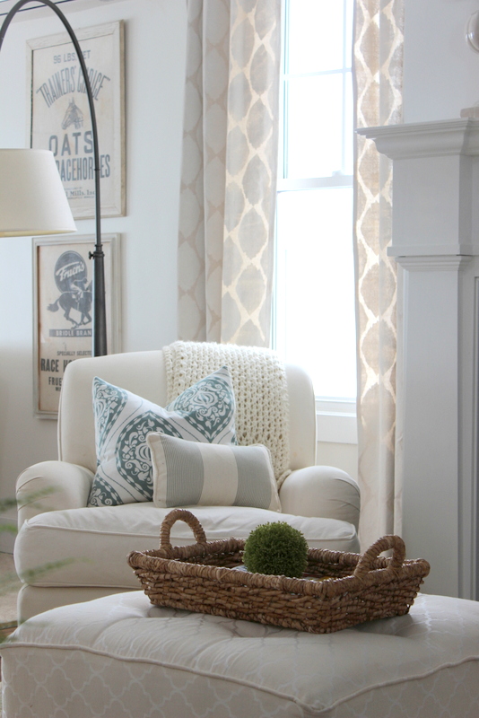 I love the curtains and white and blue throw pillow- in the last picture. can you tell me where the fabric for both came from?