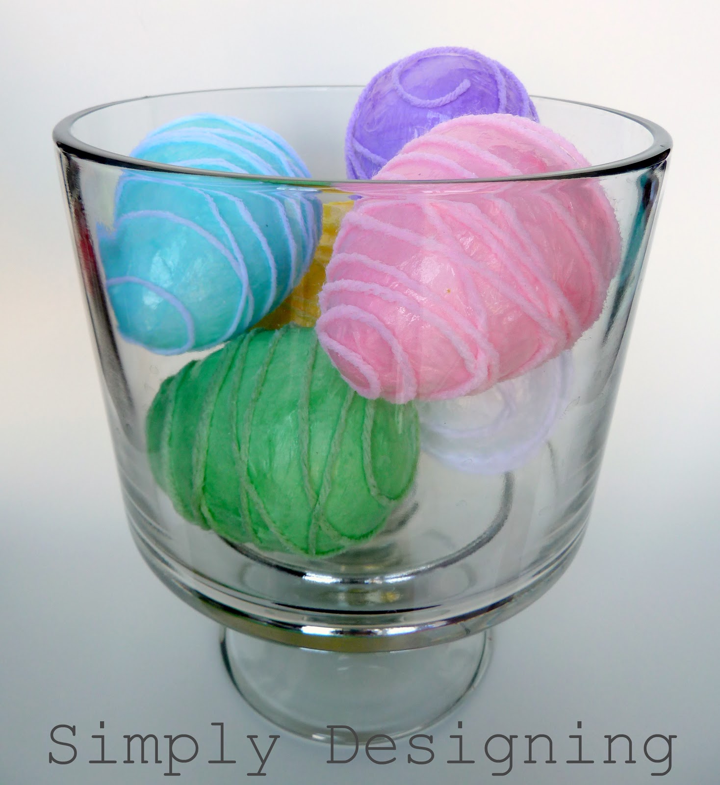 These are really cute! I was thinking of just the tissue paper to cover some plastic eggs I have, but I love the extra element of the yarn!