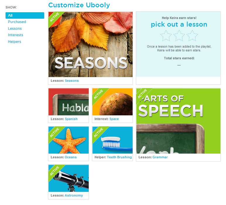 The original Ubooly app told stories, jokes and would play music but the latest version has a whole new educational portion of the app that is really cool! You can purchase credits to their Ubooly Lab where you can select your child's interests and purchase lessons for them to complete!